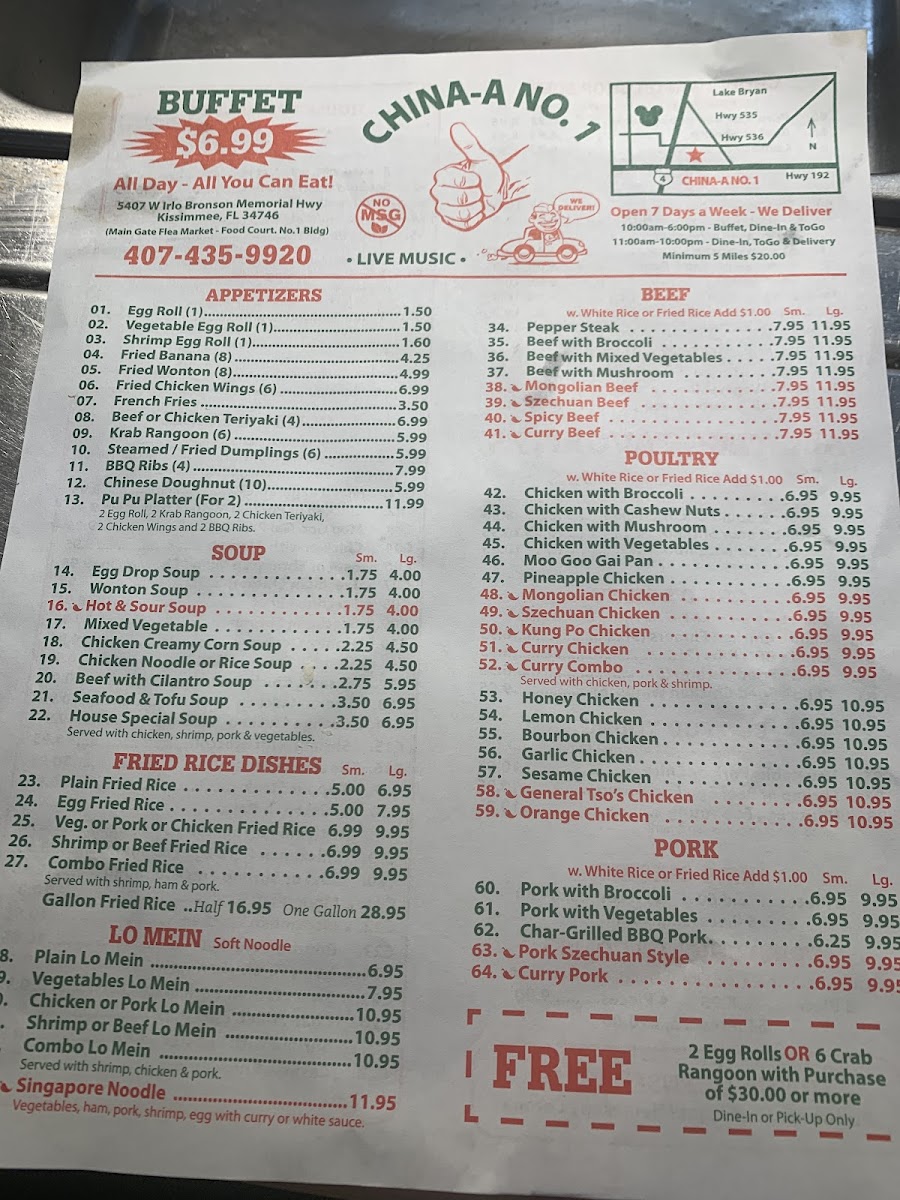 The menu at China A Buffet offers a straightforward and approachable selection of classic Chinese dishes, perfect for casual meals where comforting flavors take center stage. Whether you're stopping by for a relaxed lunch, a friendly family dinner, or a late-night bite, you’ll find a variety of dishes designed to satisfy different tastes and appetites.